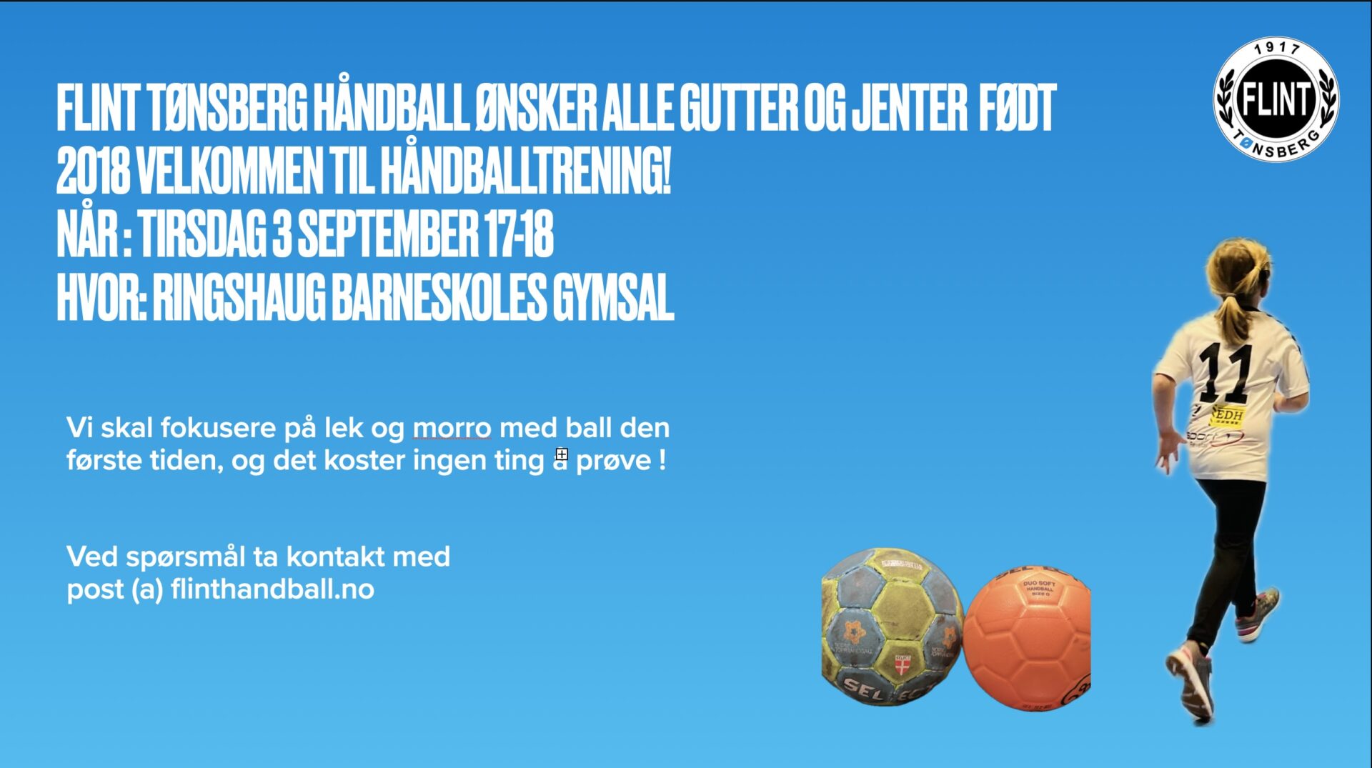 Vi starter opp med håndball for gutter og jenter født i 2018.